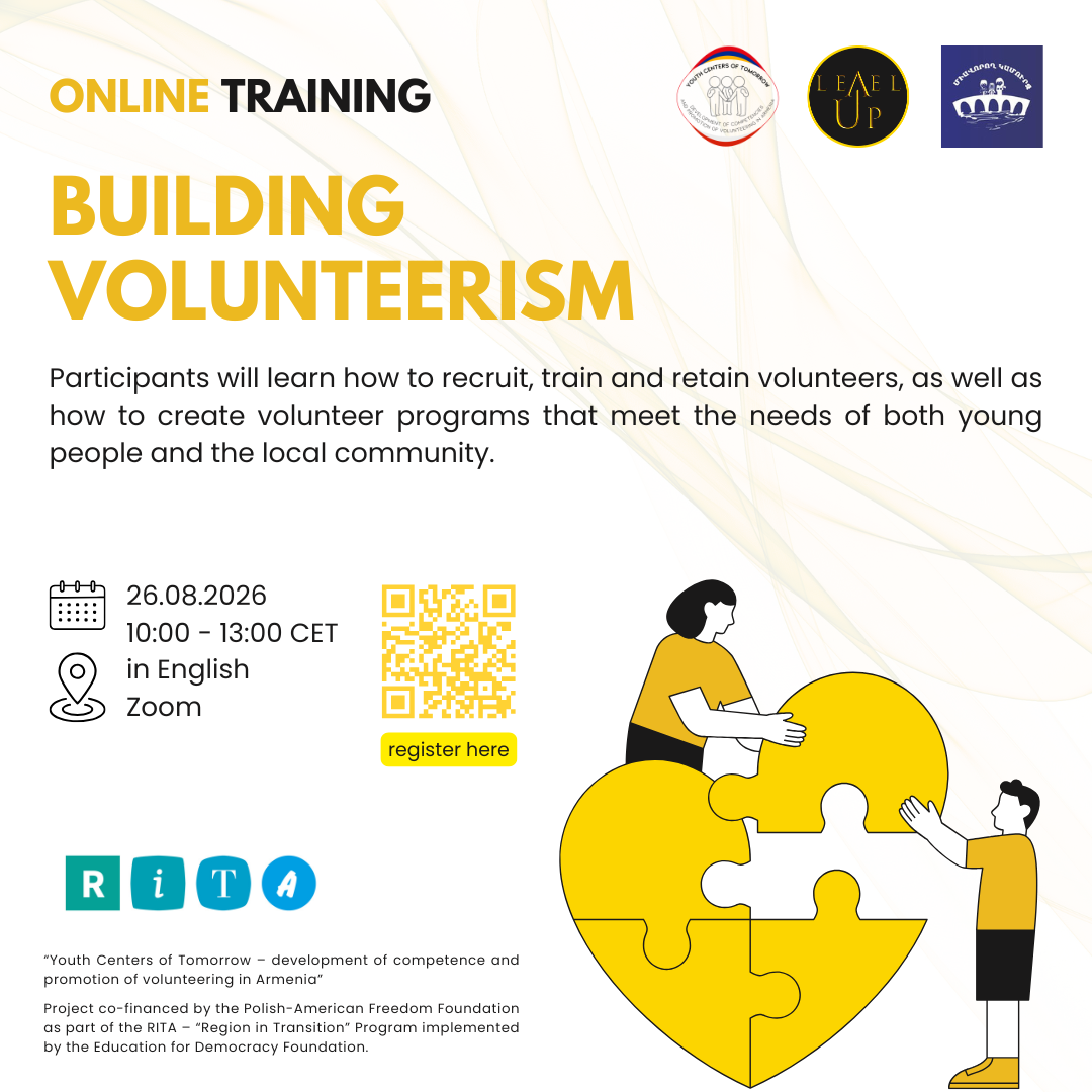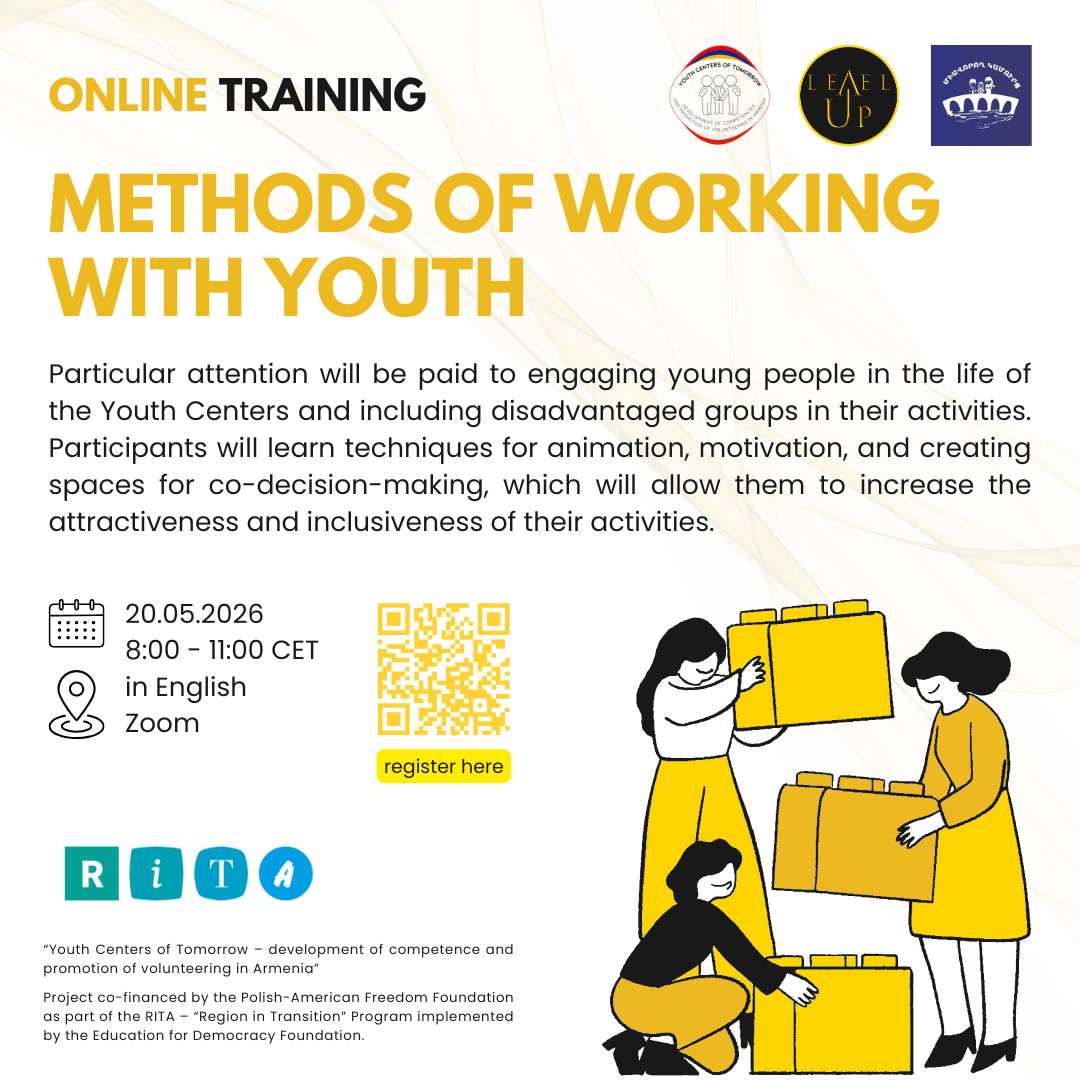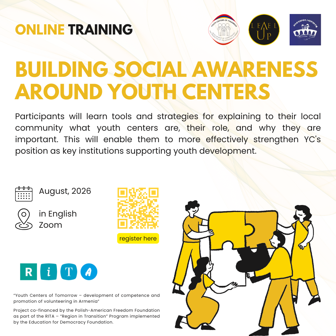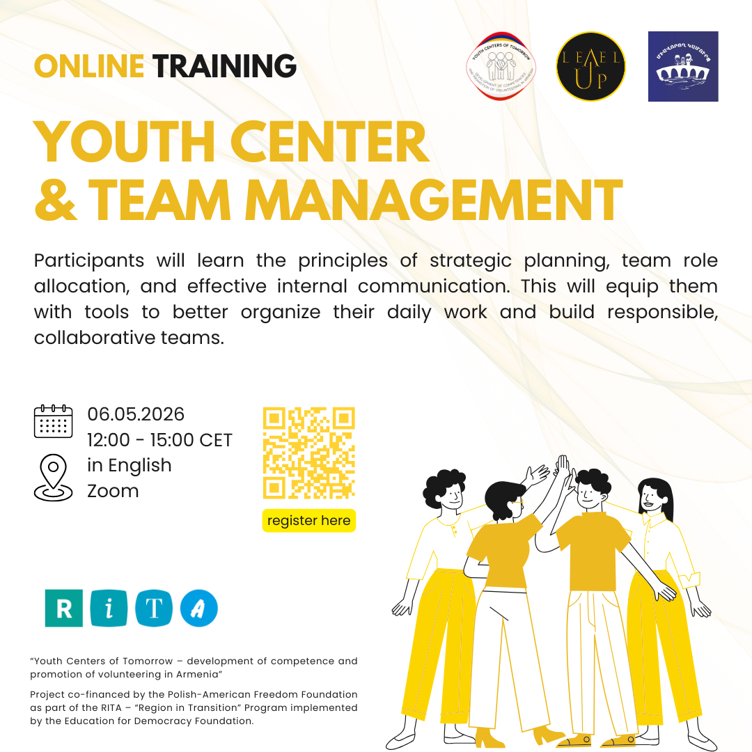 Եթե ցանկանում եք զարգացնել ձեր գիտելիքներն ու հմտությունները երիտասարդական աշխատանքի, կենտրոնների կառավարման և կամավորության ոլորտներում, ապա միացե՛ք մեզ։